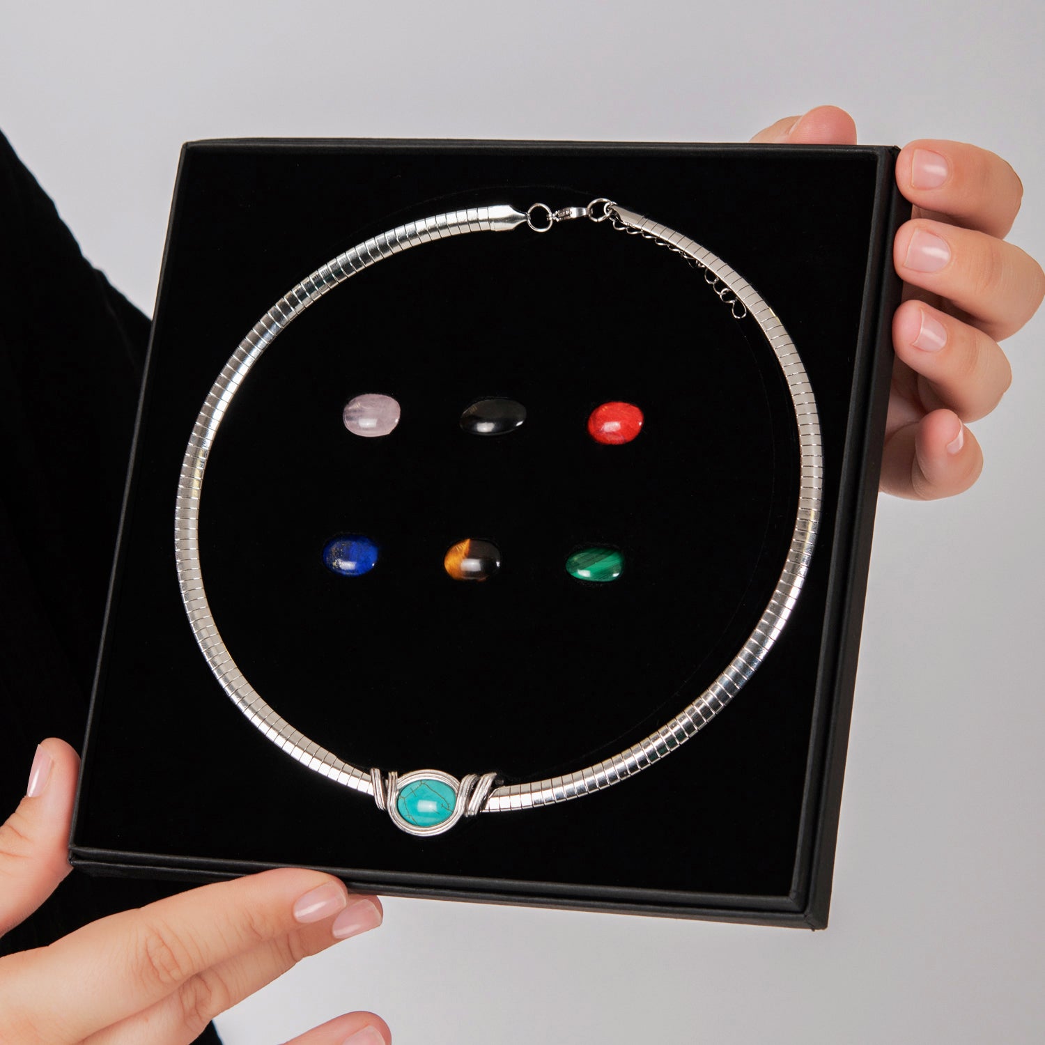 Mit der austauschbaren Edelsteinkette können Sie aus sieben Heilsteinen wählen, um Ihre Stimmung zu heben, Ihren Geist zu beruhigen oder Klarheit zu schaffen – welche Energie Sie auch immer brauchen, hier ist sie.