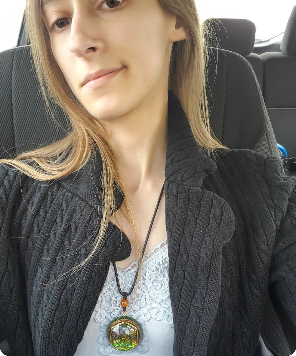 Ah! Sobald ich meine Halskette trug, spürte ich ihre Erdung und ihre elektrische Energie. Ich weiß, sie gehört mir, ich kann sie in meine Seele füllen.