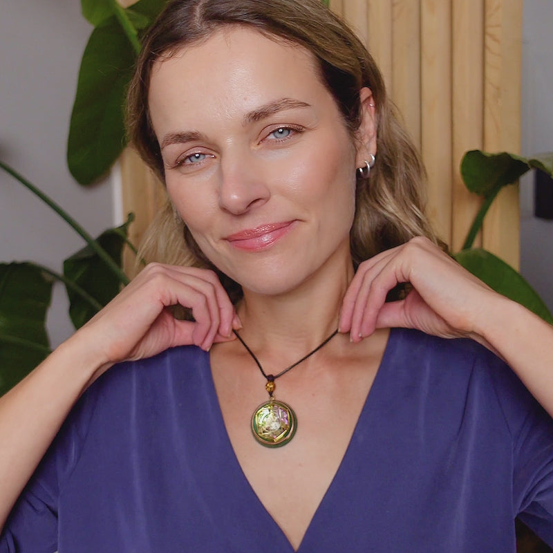 Dieser Talisman liefert sofort Energie! Die Farben sind leuchtend, er liegt perfekt auf meiner Brust und haftet an meinem Körper, als wäre er für mich bestimmt. Wirklich magnetisch.