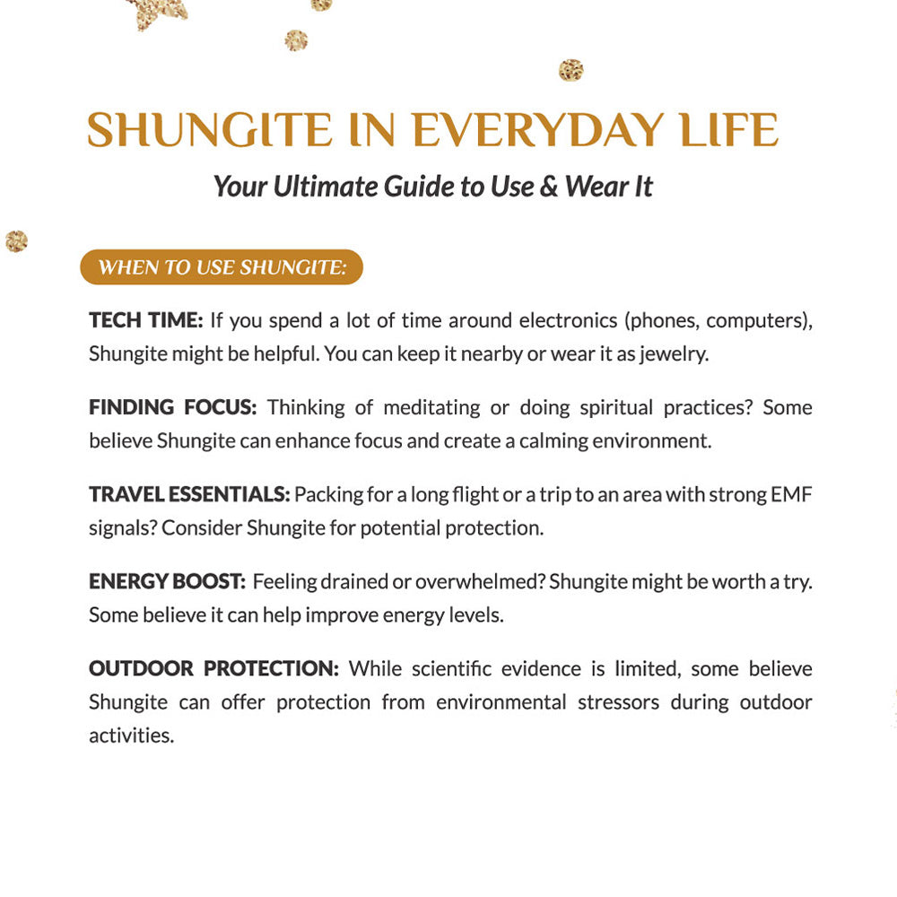 UN GUIDE PDF TÉLÉCHARGEABLE ET IMPRIMABLE POUR APPRENDRE TOUT CE QUE LA PIERRE SHUNGITE A À OFFRIR.