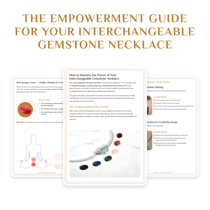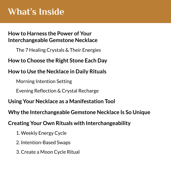 Téléchargez votre guide dès aujourd'hui et commencez à vous autonomiser avec l'énergie transformatrice de votre collier de pierres précieuses interchangeables !
