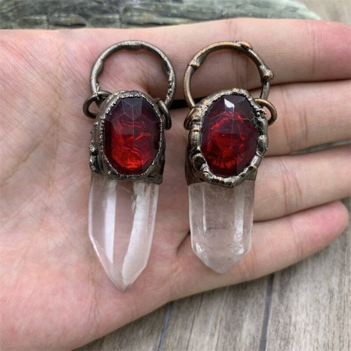 Orné d'une perle de verre rouge, détaillé avec des matériaux d'aspect vintage et fabriqué à partir de matériaux robustes, ce pendentif en quartz clair apportera joie et spiritualité accrue pendant longtemps !