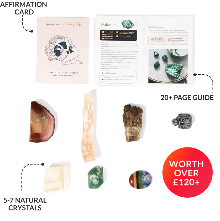 Every month, you'll unbox 5-7 natural crystals worth over £120, along with a guide of at least 20 pages. Each crystal is unique in its origin, shape and color. No repeating crystals.