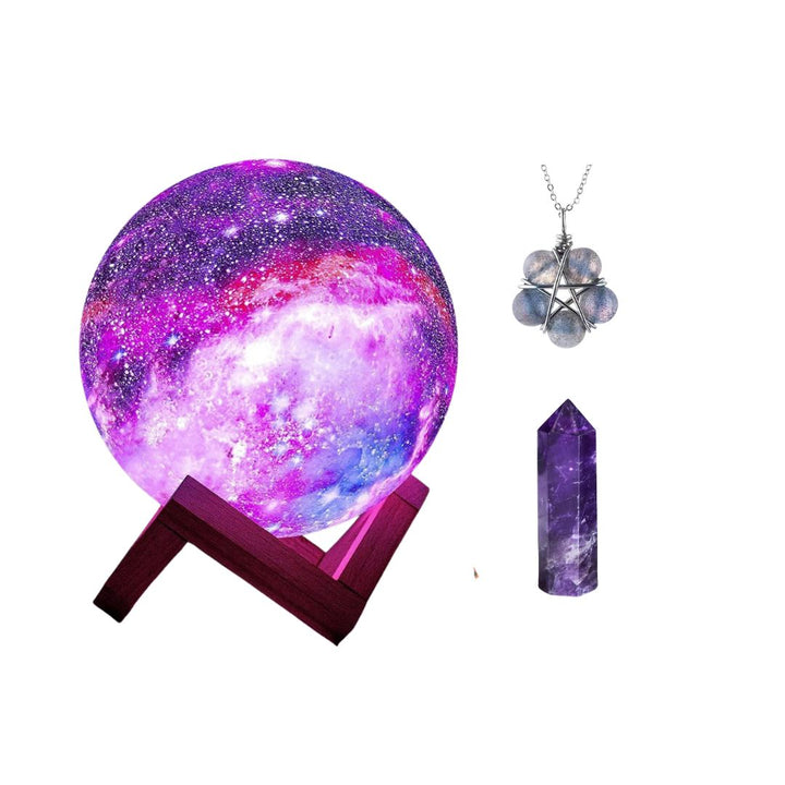 3D Galaxy Moon Lamp: Bring the beauty of the cosmos into your space. This colour-shifting moon lamp creates a soft, celestial glow. Perfect for meditation, bedtime rituals, or winding down under your own little galaxy.