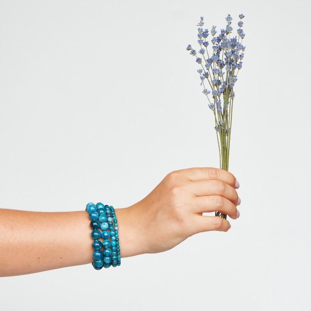 Made with Blue Apatite stones, this bracelet not only shines with a gorgeous colored pattern but also carries a strong spiritual symbolism. Apatite is a protective stone known to fuel your passion, inspiring new projects, ideas, and opportunities.